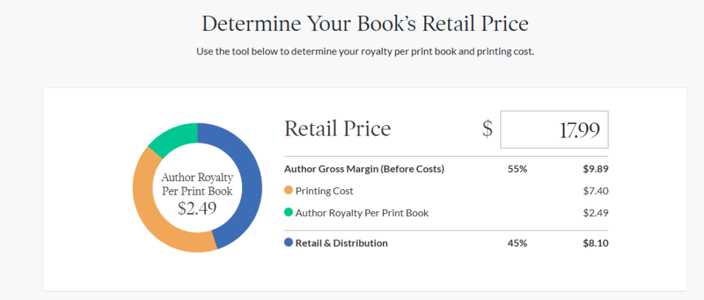 Platforms like this have a formula for figuring out how much it (presumably) costs to print a book. There’s a base cost plus a per-page cost that ends in a dollar value. My novel, “Apprentice” is 508 pages. The print cost is $7.40.